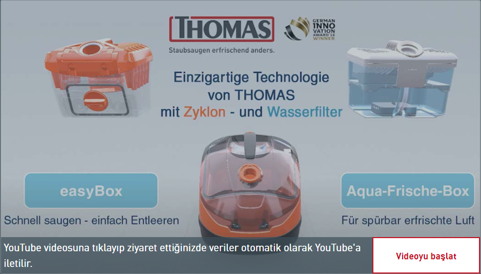 THOMAS ZYKLON filtre kutusu, yalnızca bir litre musluk suyuyla doldurulmuş bir filtreye karşı kolaylıkla kullanılabilir THOMAS AQUA filtre kutusu değiştirilebilir. Evcil hayvan tüylerine yönelik siklonlu elektrikli süpürge bu şekilde sıfıra dönüşür Tazelik elektrikli süpürgesiyle alakası yok çünkü su filtre sistemi koku molekülleri ve hayvan kılları içeriyor ve toz emilir, suya bağlanır ve bu nedenle artık oda havasına çıkamaz. Bu, süpürme sırasında havanın %100 gözle görülür şekilde yenilendiği anlamına gelir!